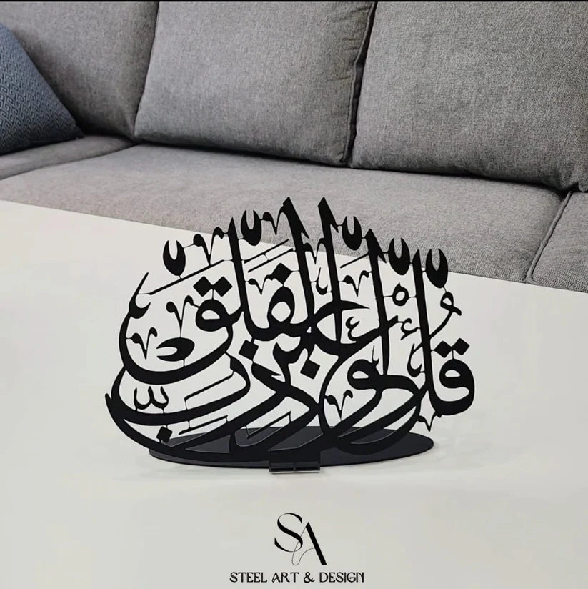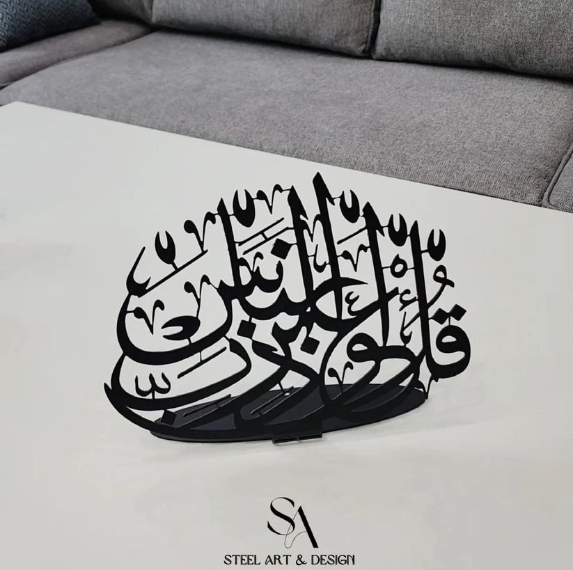 Each Tabletop is meticulously designed using traditional Islamic calligraphy, creating a visually stunning piece that celebrates both literature and cultural heritage. The graceful curves and intricate strokes of the calligraphy lend a sense of sophistication and serenity to your space, making it a perfect addition to your home or office décor.