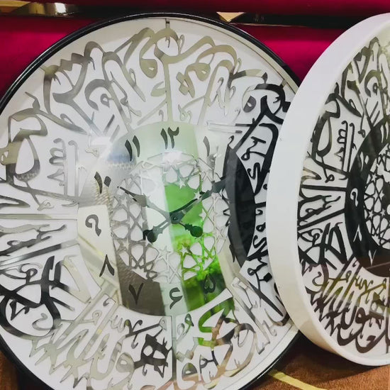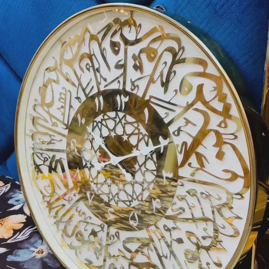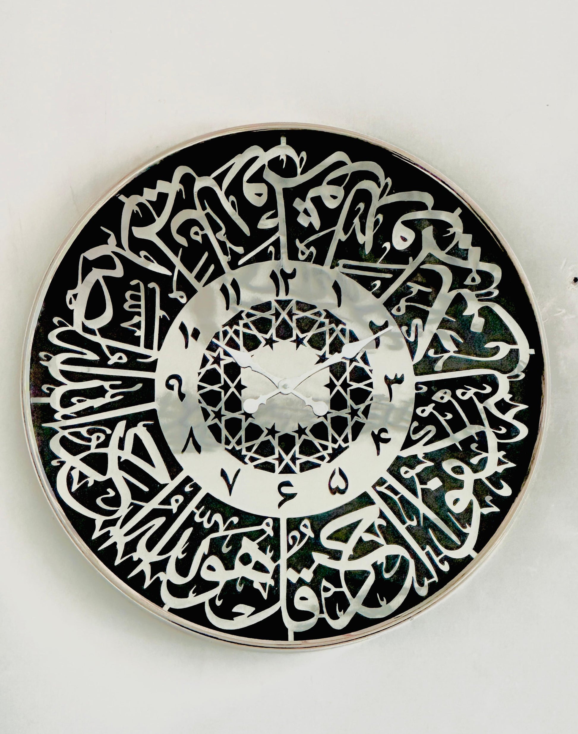 Introducing our exquisite Metal Islamic Calligraphy Wall Clock, a fusion of functionality and artistic beauty. Arabic Islamic Wall Clocks crafted with precision and care, this clock features intricate Islamic calligraphy that adds an elegant touch to any room.