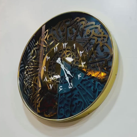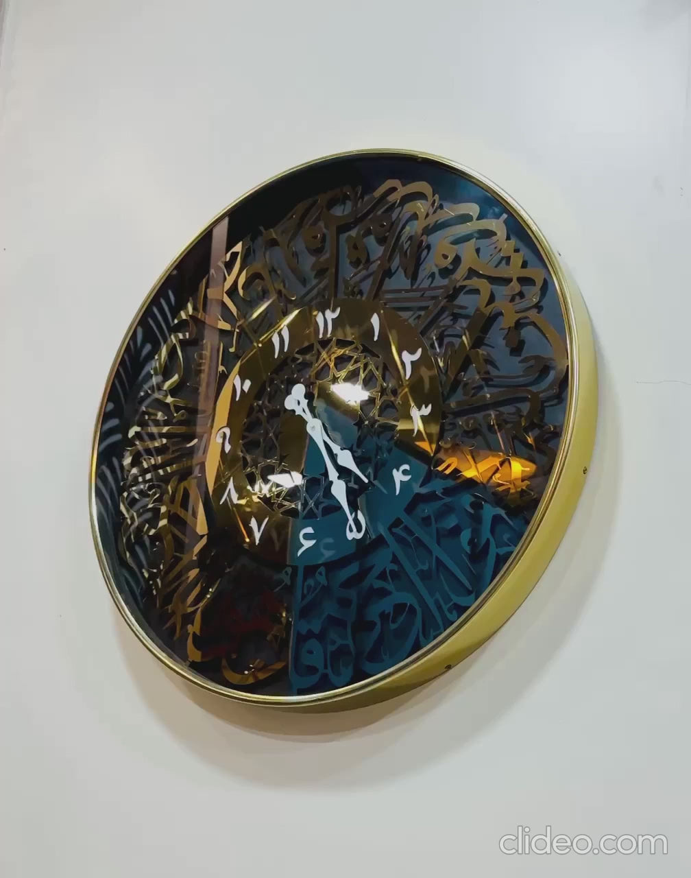 Made from high-quality metal, our Islamic Calligraphy Wall Clock is not only a timeless piece of art but also a durable and reliable timekeeping device. Whether hung in your living room, dining area, or study, this clock serves as a reminder of faith and spirituality while also helping you stay on schedule in style.